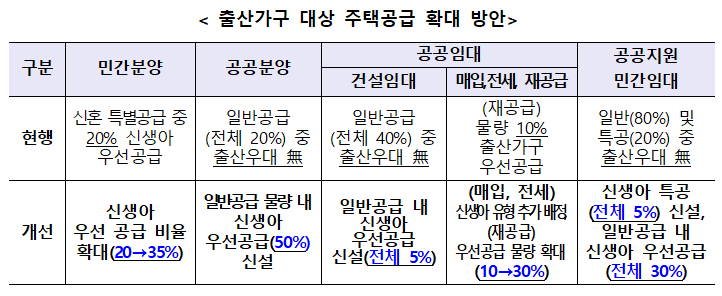 주요 변화 신생아 가정의 청약 조건 우선 제공